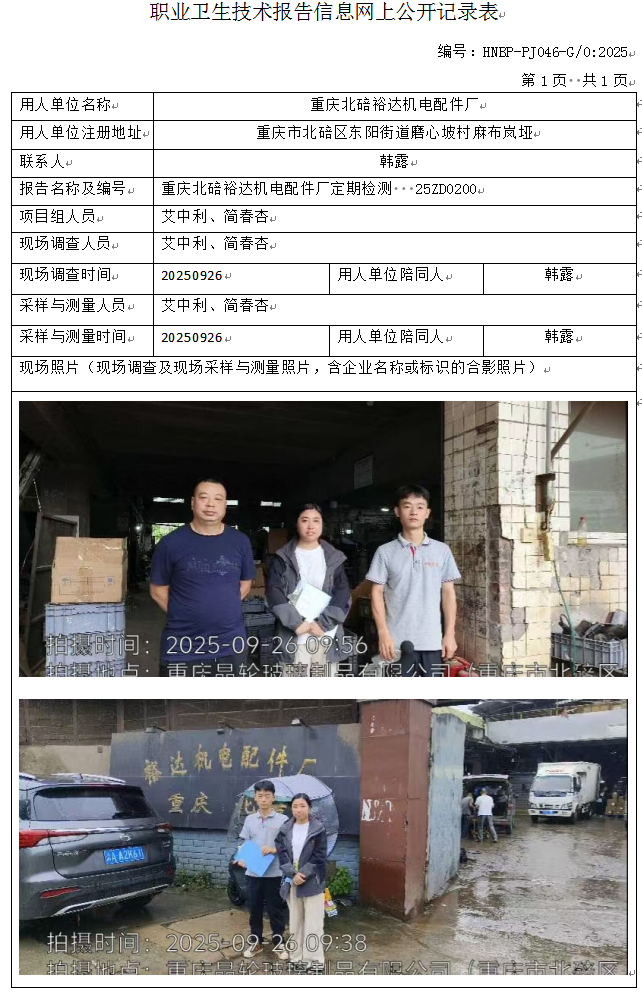 重庆北碚裕达机电配件厂定期检测公示
