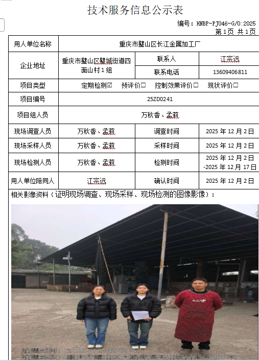重庆市璧山区长江金属加工厂定期检测项目公示