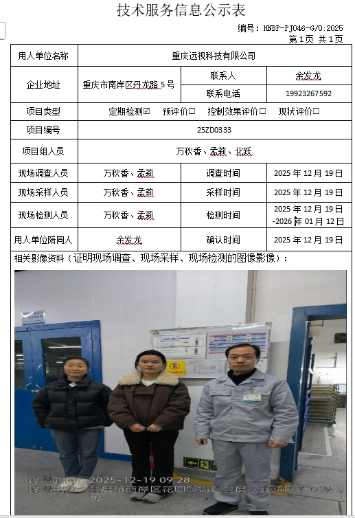 重庆远视科技有限公司定期检测项目公示