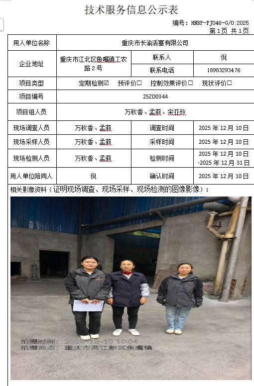 重庆市长渝活塞有限公司定期检测项目公示