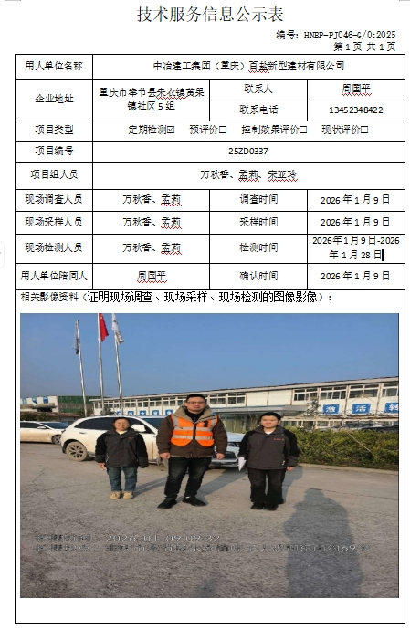 中冶建工集团(重庆)百盐新型建材有限公司定期检测项目公示