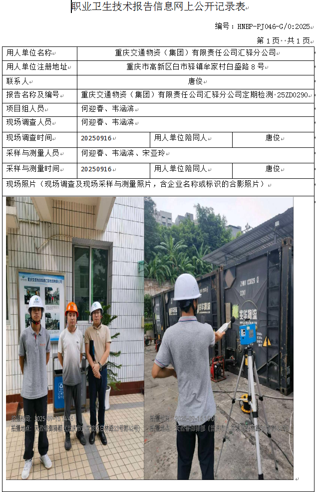 重庆交通物资(集团)有限责任公司汇驿分公司定期检测公示