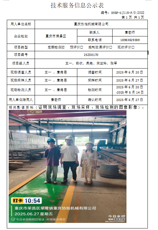 职业卫生检测项目公示