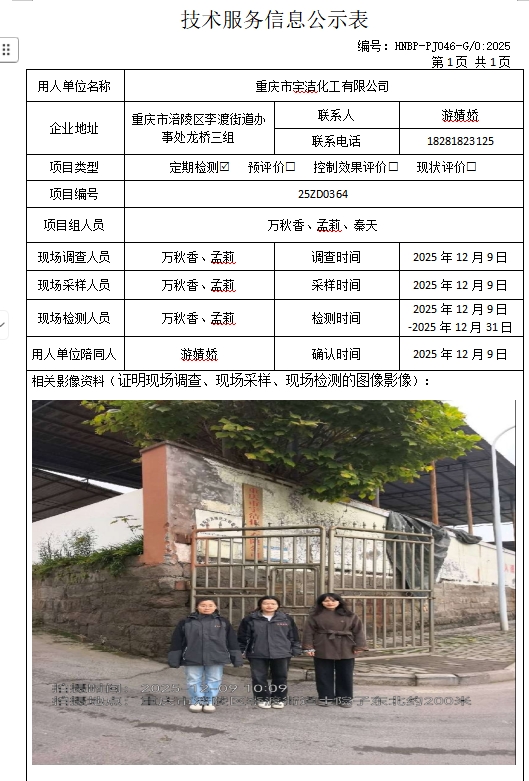 重庆市宇洁化工有限公司定期检测项目公示