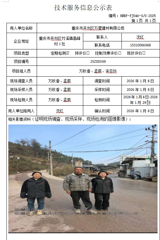 重庆市开州区万星建材有限公司定期检测项目公示