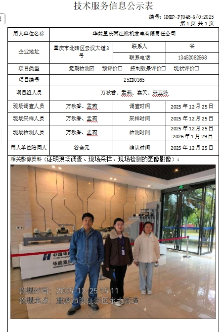 华能重庆两江燃机发电有限责任公司定期检测项目公示